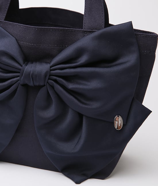 大きなサテンリボンが存在感のある、フェミニンなトートバッグです。トートSサイズは小さいながらも長財布やペットボトル、スマートフォン、タオルハンカチなども入る大きさでメインバッグとして、また旅行やおでかけなどのサブバッグとしてもおすすめです。オリジナルプレート(シルバー)付