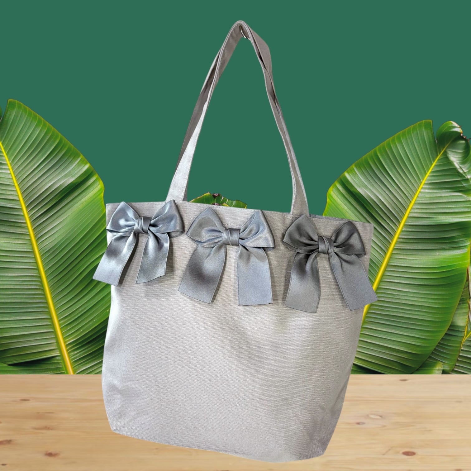 FINAL SALE★bg0191 肩かけできる☆トートSワイド☆《サテンリボン6P》グレー