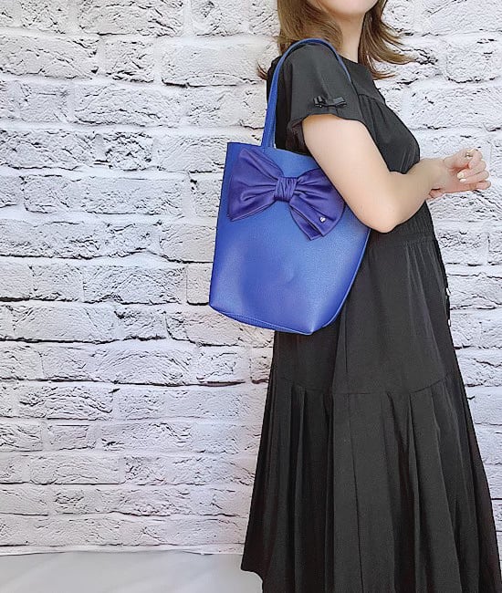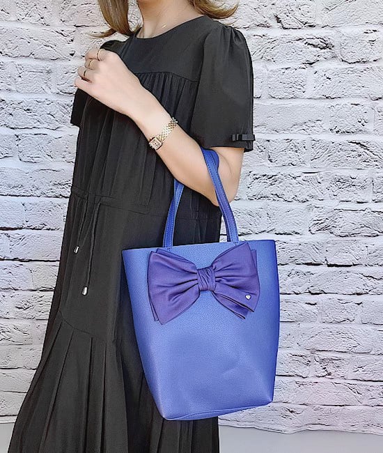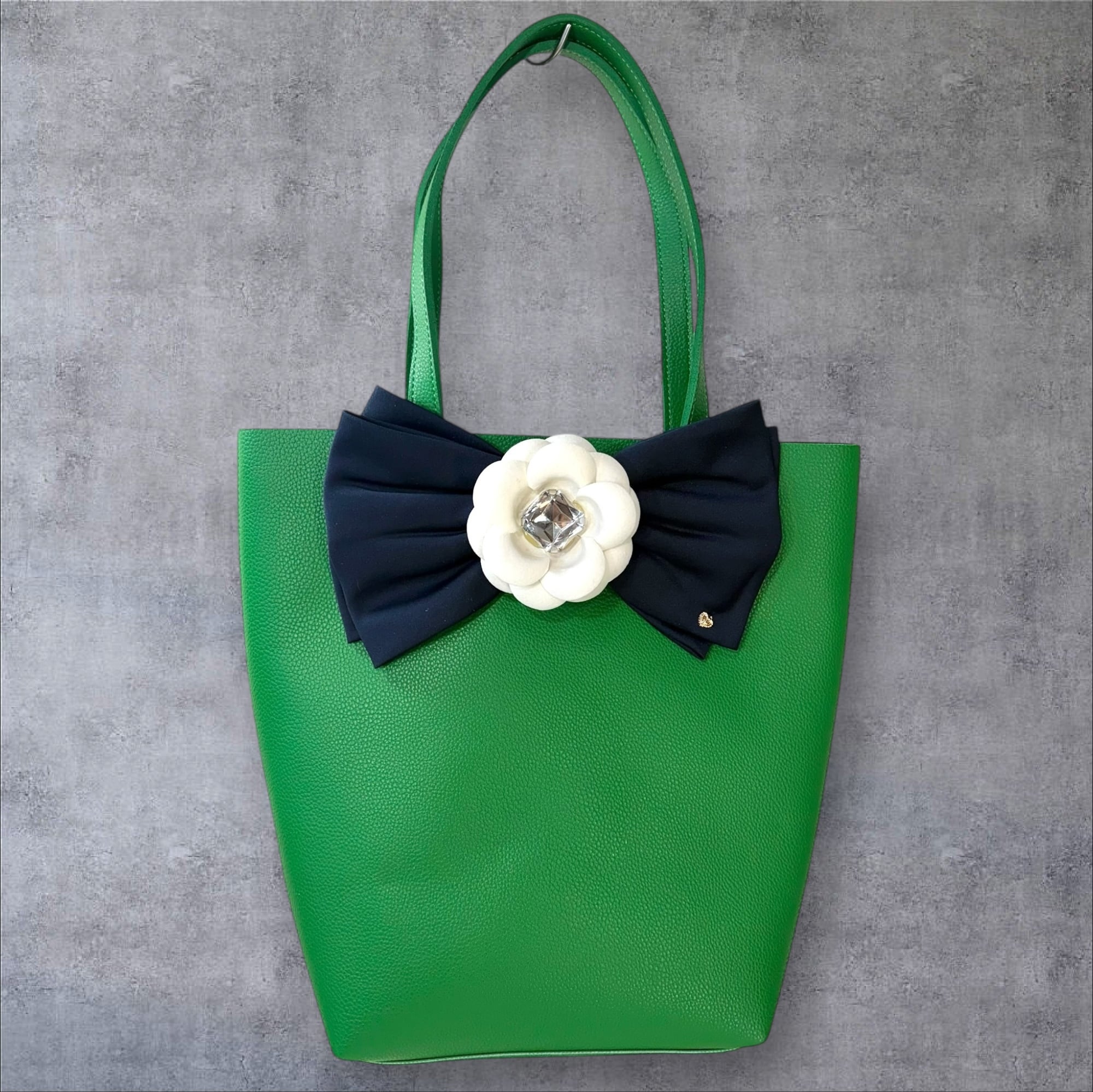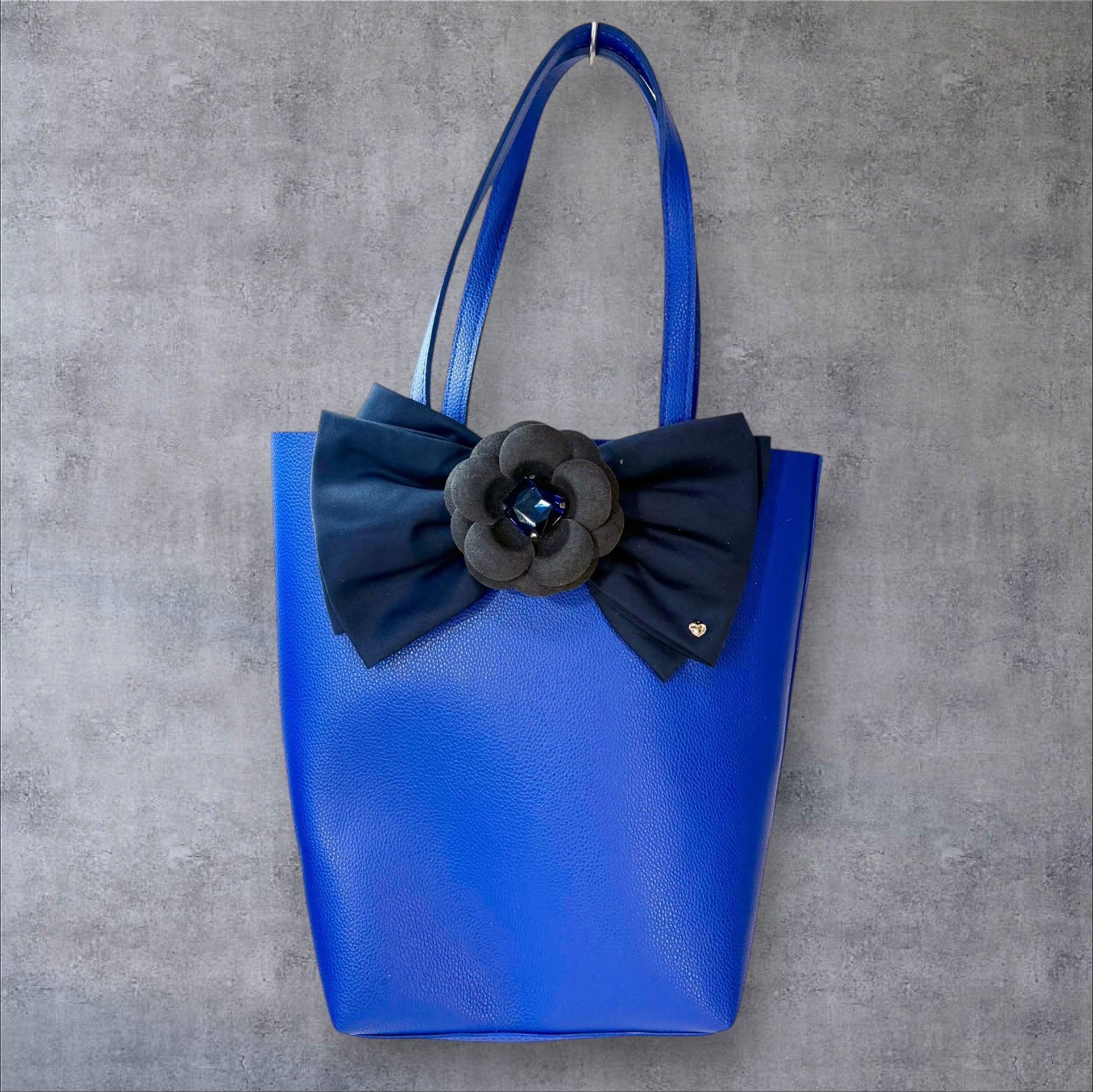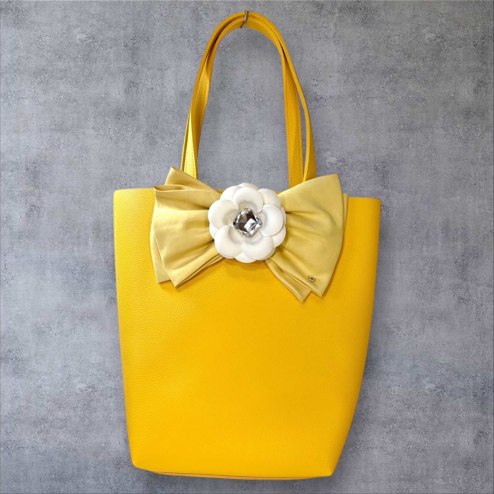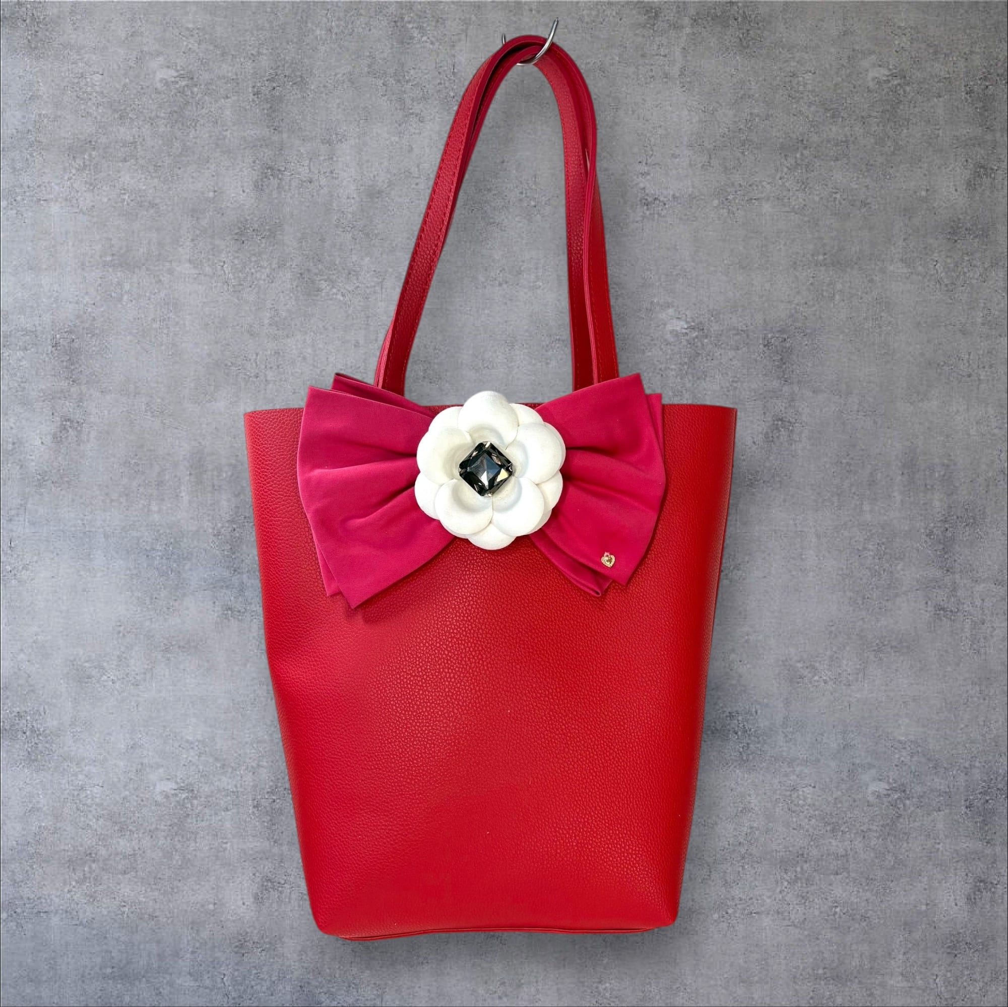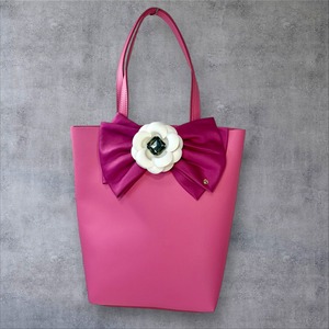 CLOSE SALE★pb0246-C 限定限り・BIGリボン&ジュエリーカメリア・縦型トート(合皮)