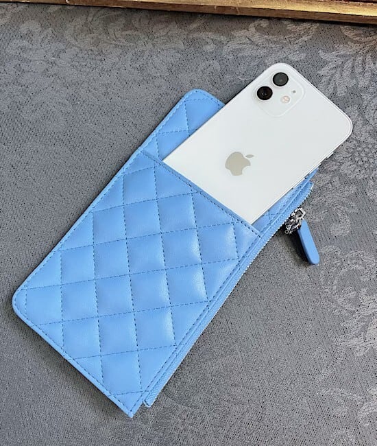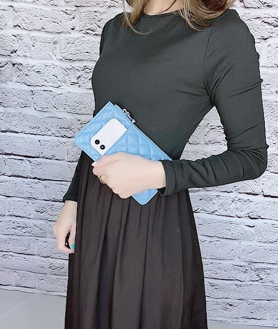 本体はファスナー付きでコインやカード、スマホなどを入れることができます。
