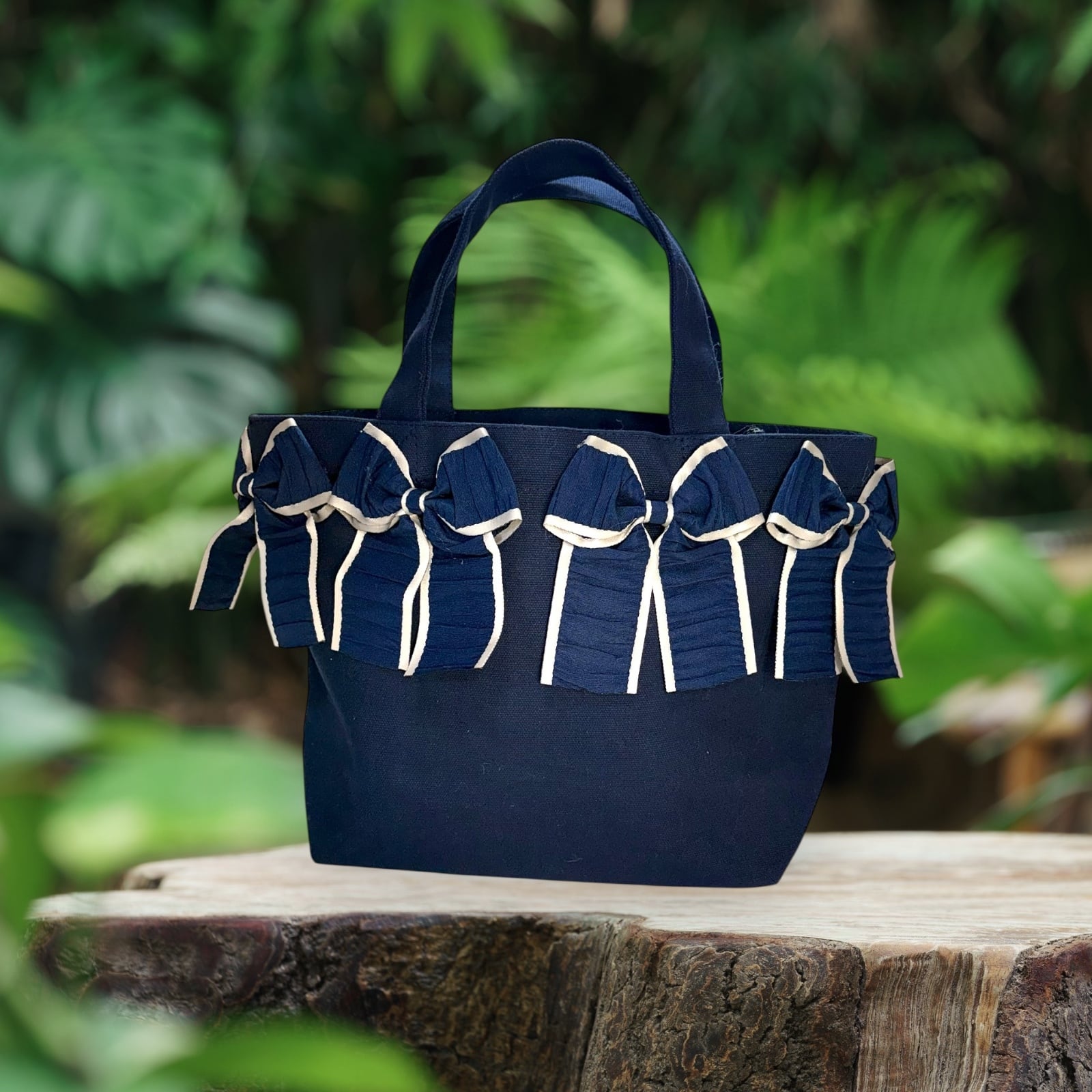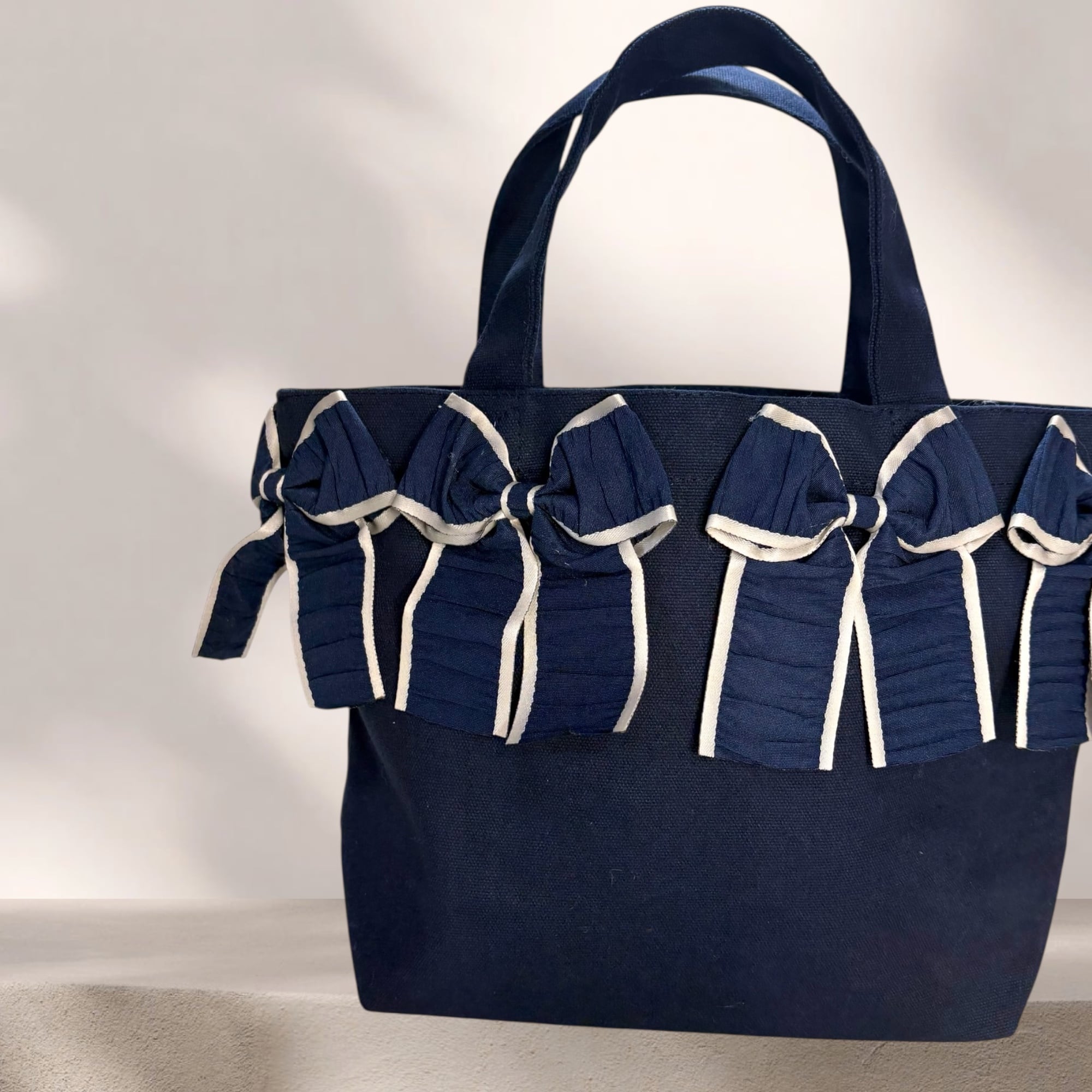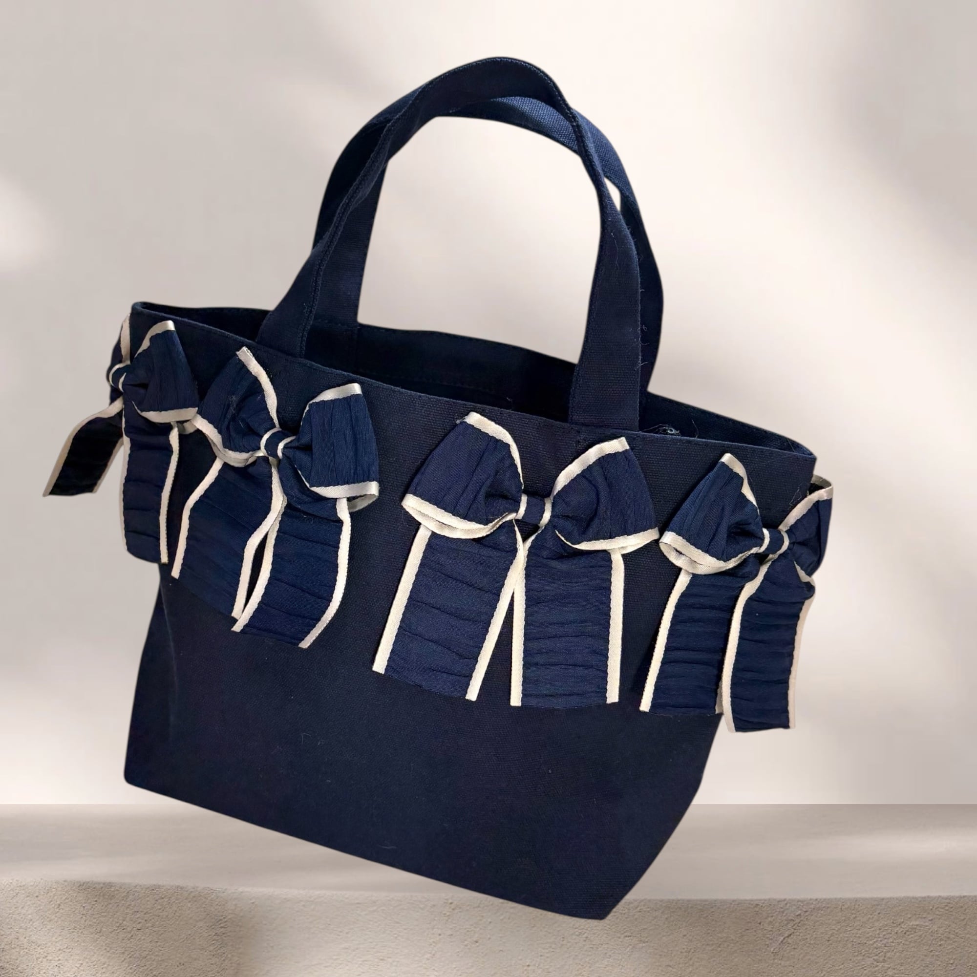 バッグ:ネイビー/リボン:ネイビー×グレージュ
