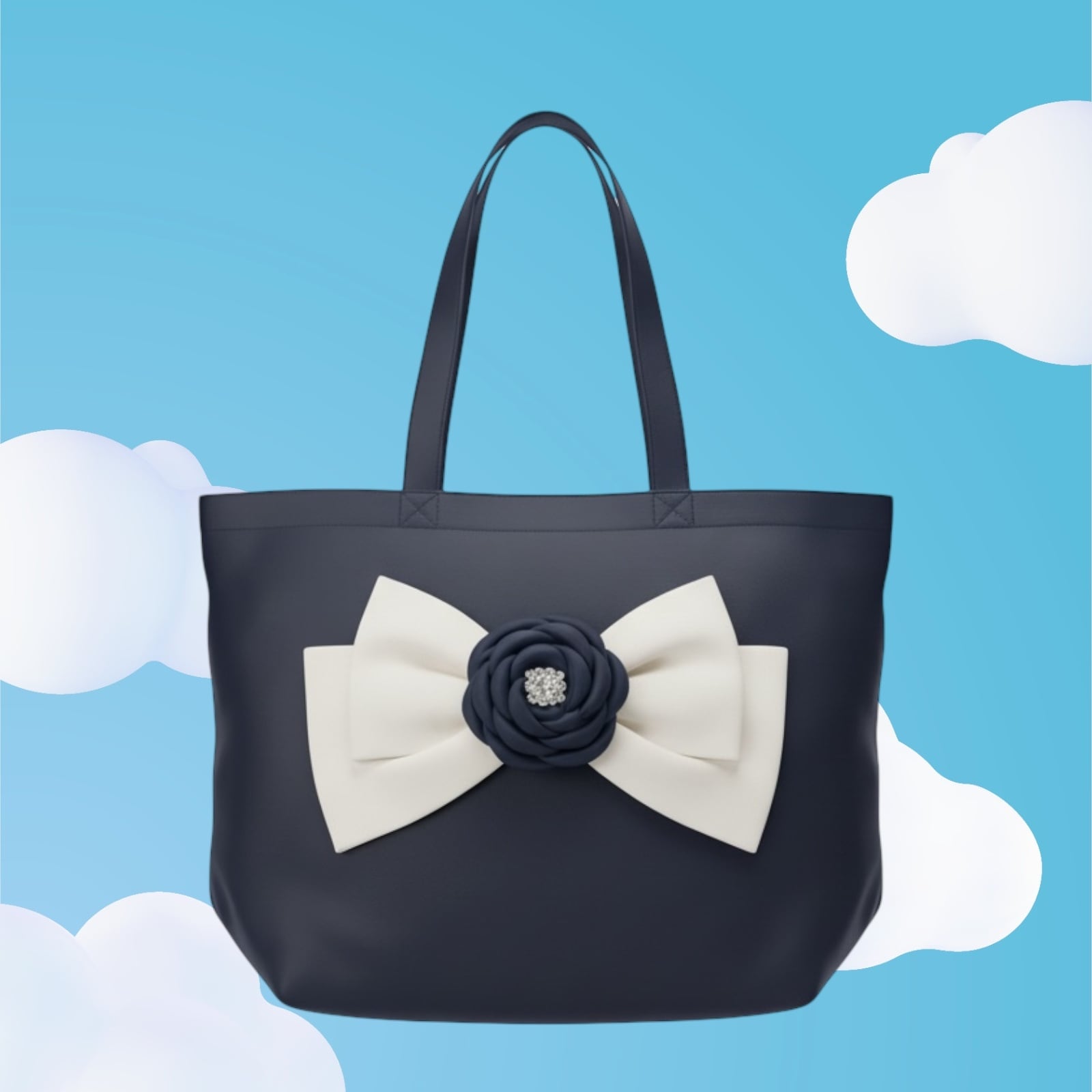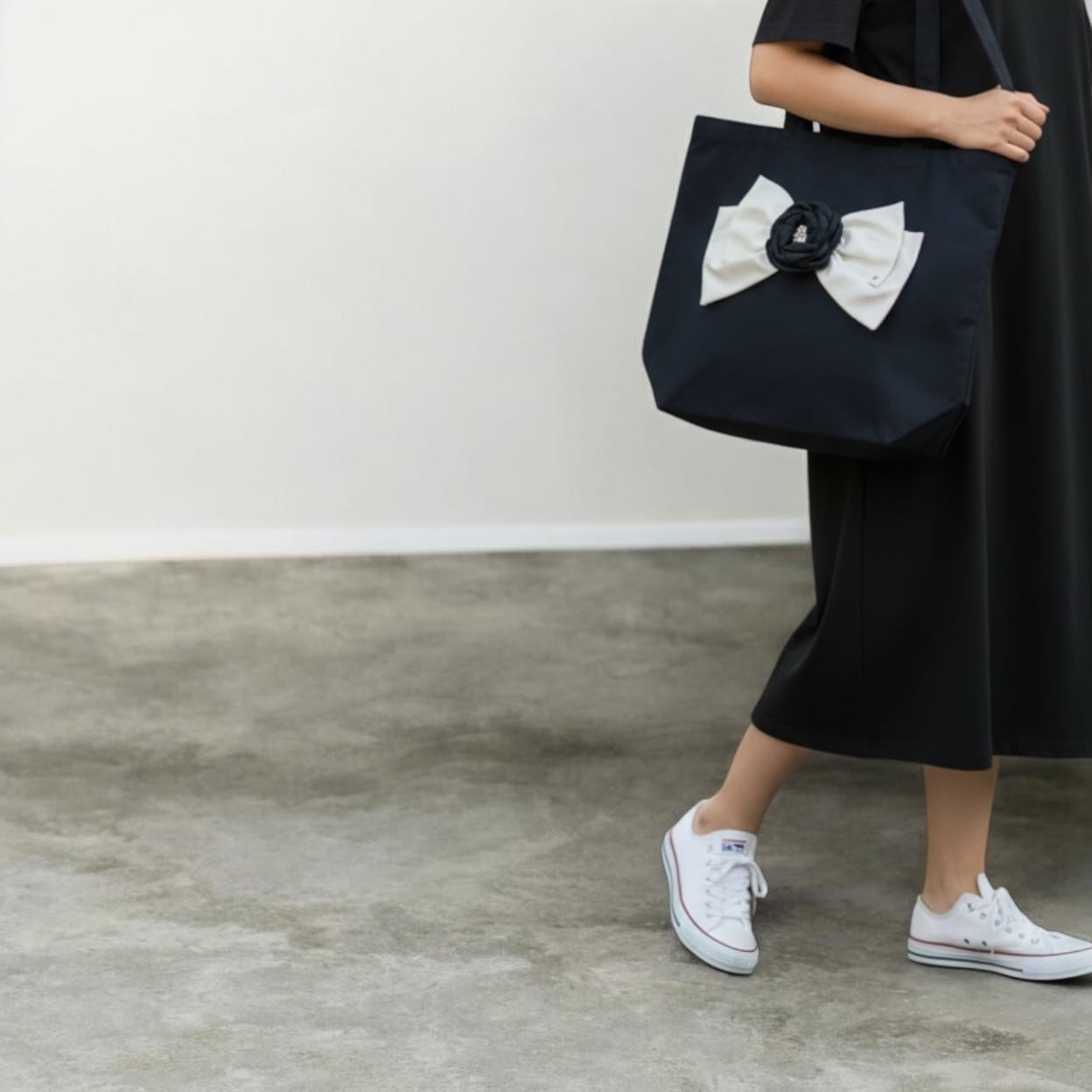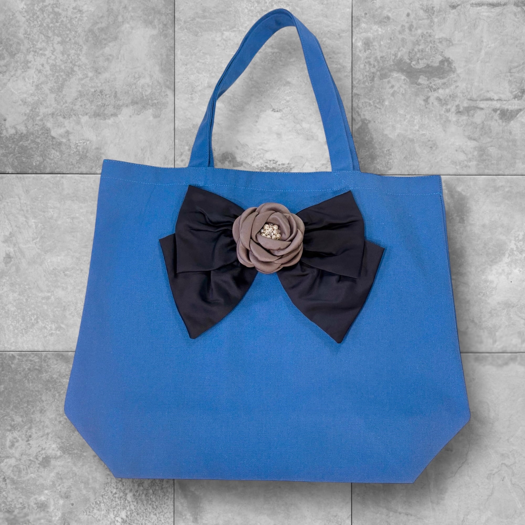 FINAL SALE★bg032 キャンバストートL《サテンベルリボン&エレガントコサージュ 》