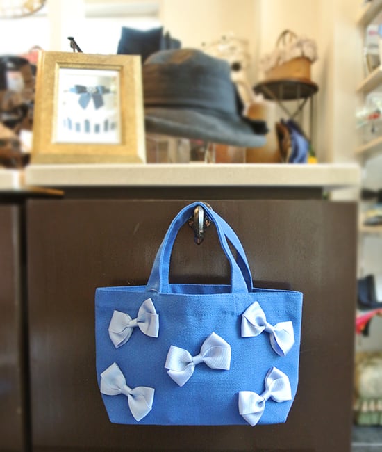 トートSに可愛いにミニサイズが仲間入りしました。シンプルなリボンをランダムにちりばめたバッグは大人でもお使いいただけるシンプル可愛いデザインです。ランチバッグとして、ちょこっとお出かけに、また親子、姉妹、お友達とお揃いやプレゼントにもおすすめです。※リボンはすべて同色になります。