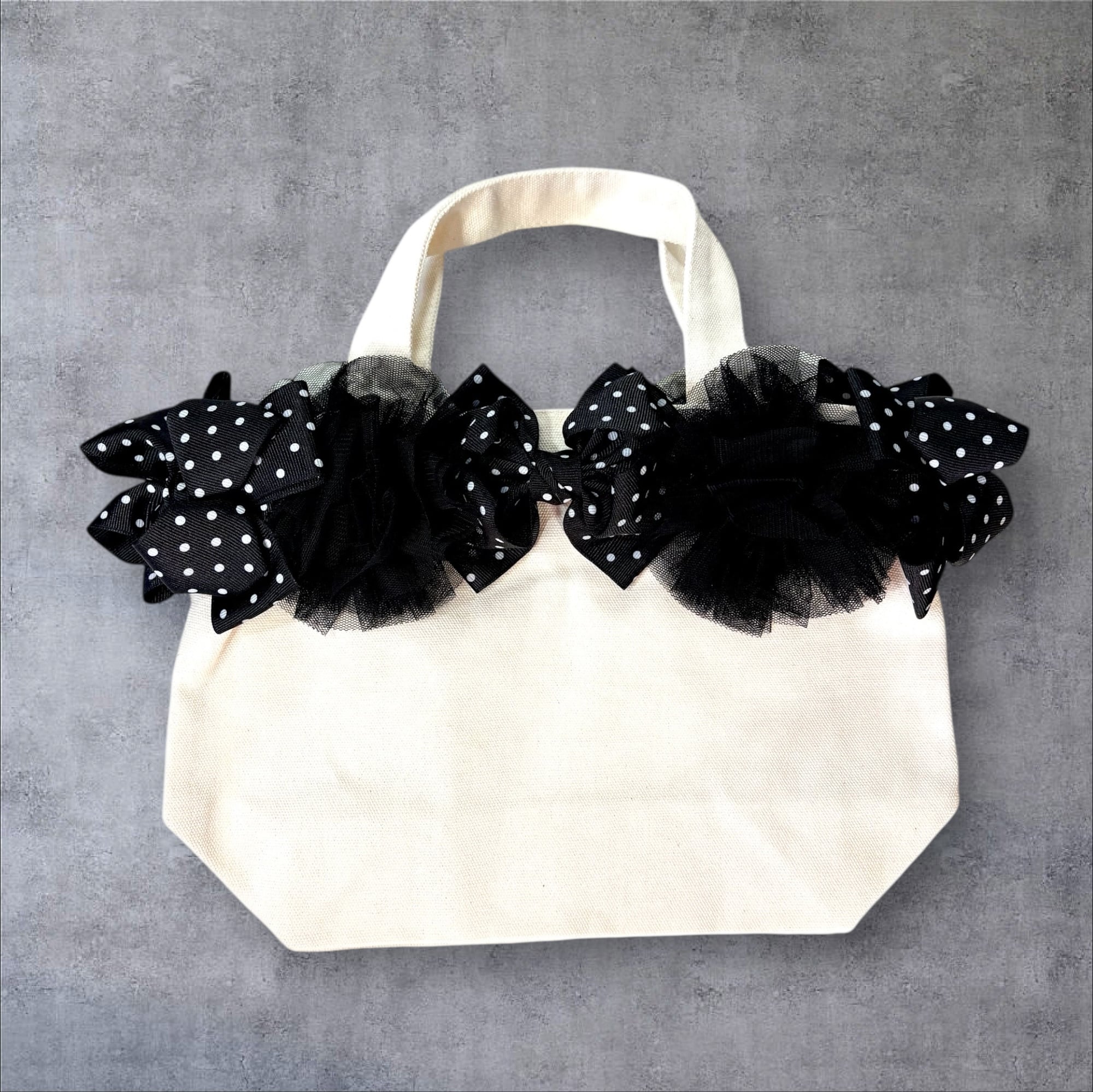 CLOSE SALE★DRB0006-BL チュールで仕立てたお花とツィストリボンのお花畑のようなトートS★★★