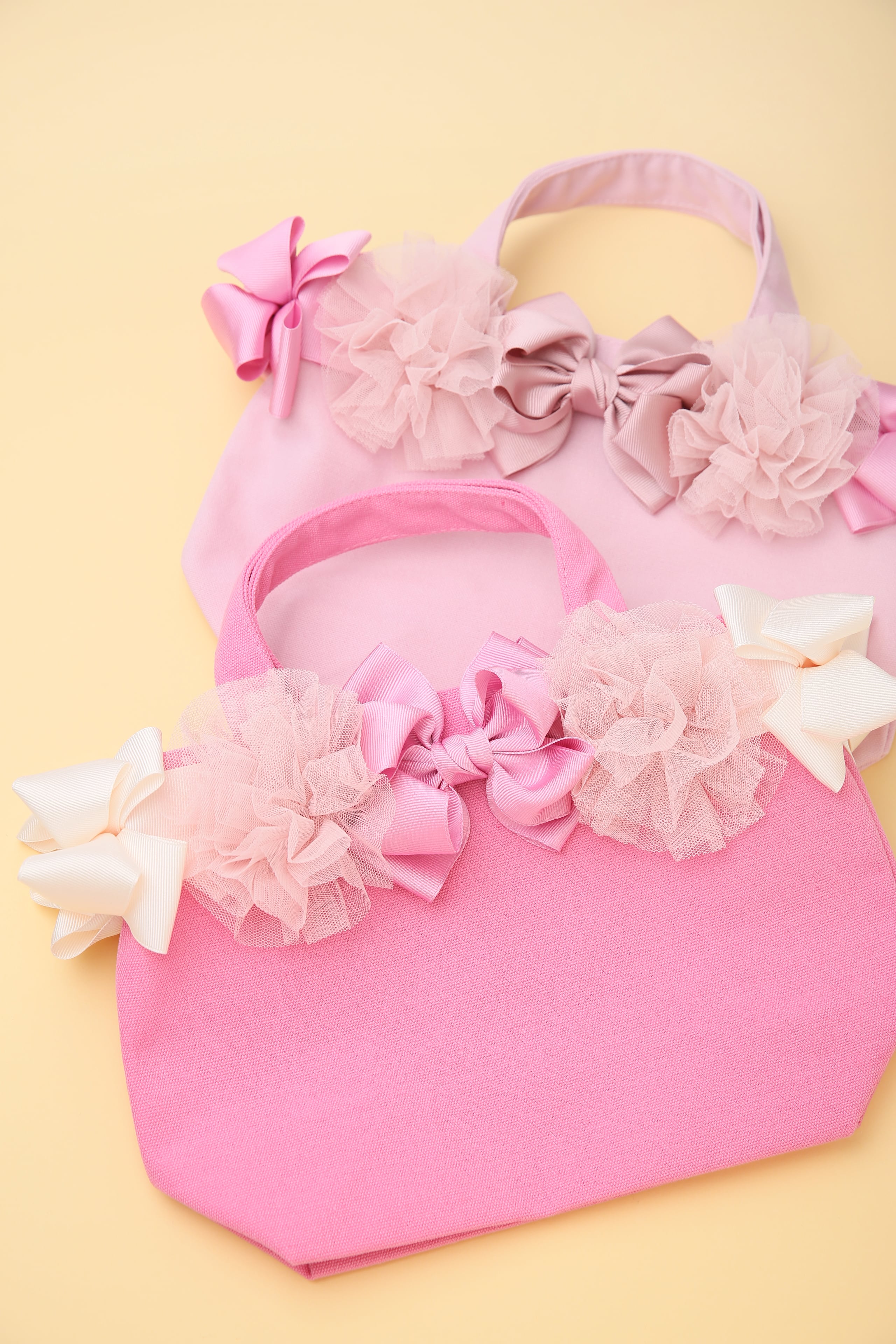 チュールで仕立てたお花とツィストリボンのお花畑のようなトートS