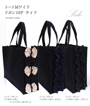大変好評をいただいておりますサイドデザインからMワイドが入荷致しました。カジュアルスタイルにもエレガントスタイルにも存在感のあるデザインはメインバッグとしてご活用いただけます。お好みのリボンカラー2色をお選びいただけます。※カラーの組み合わせは可