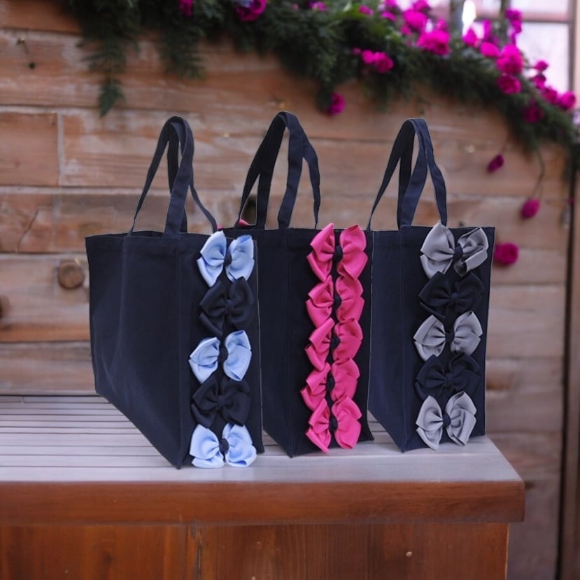 CLOSE SALE★bg0125- <選べるリボン>キャンバストートMワイド《サイド》《バイカラーリボン10P》