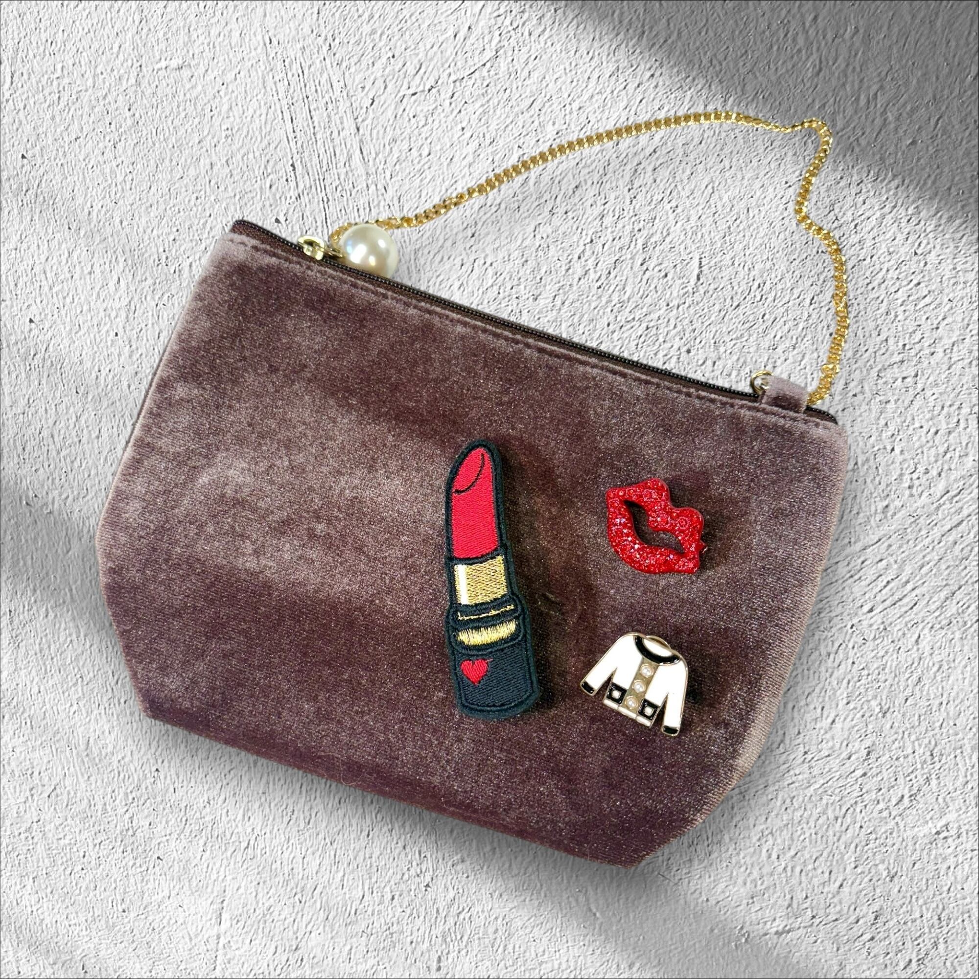 • CLOSE SALE★pc0028 ベロアチェーンポーチ《チュールミルフィーユリボン》《メレバケットストーンS》