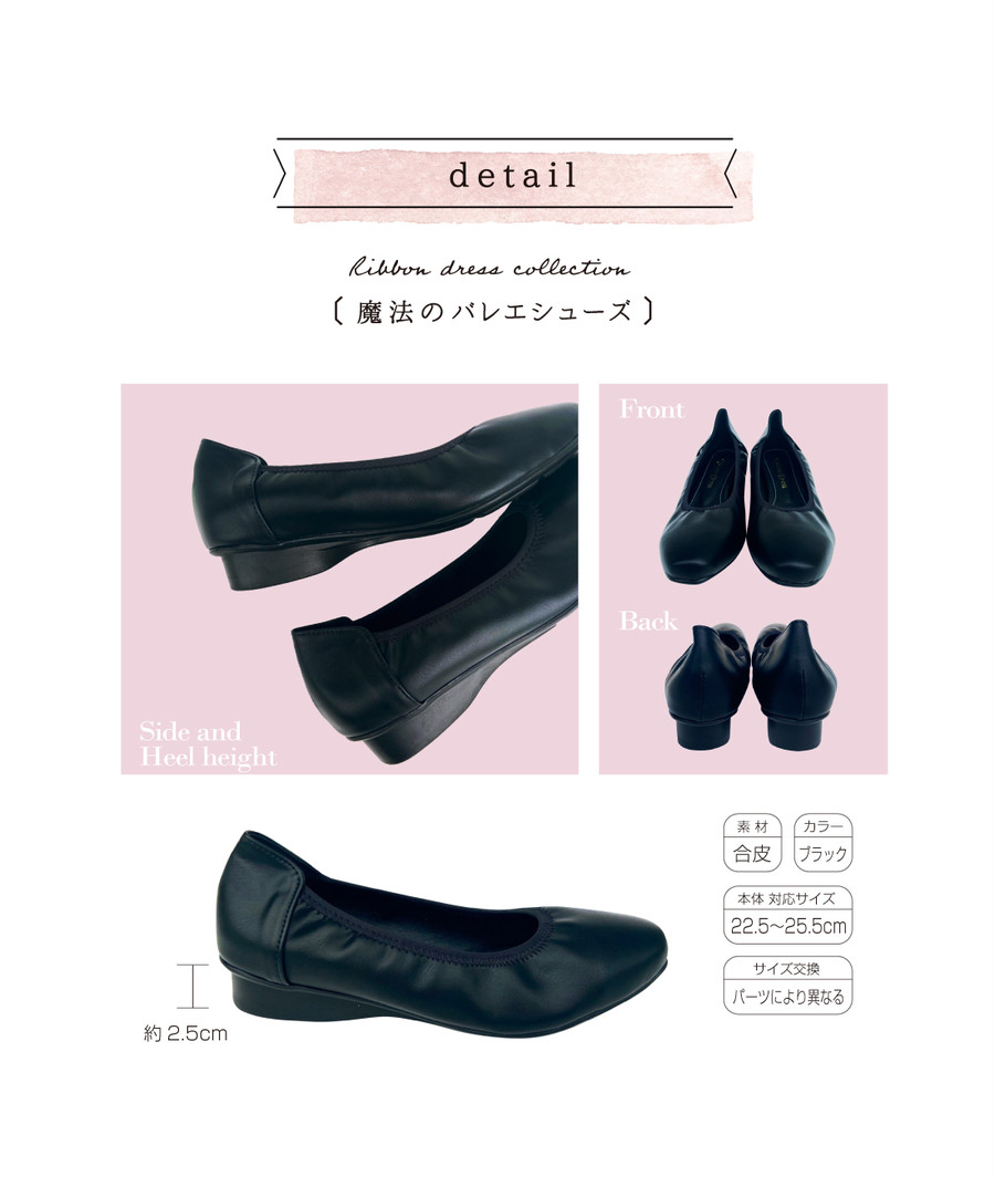 クッション性のある中敷きと低めに設定されたヒールが足を疲れにくくさせ、とても歩きやすく履き心地のよい形状に仕上がっております。質のよいグログランリボンを立体的に仕立て存在感があり当店人気No.1のリボンとなっております。通年を通して履いていただけるバレーシューズはデイリーに大活躍してくれます。バッグやヘアアクセとお揃いのスタイルもとても素敵です。
