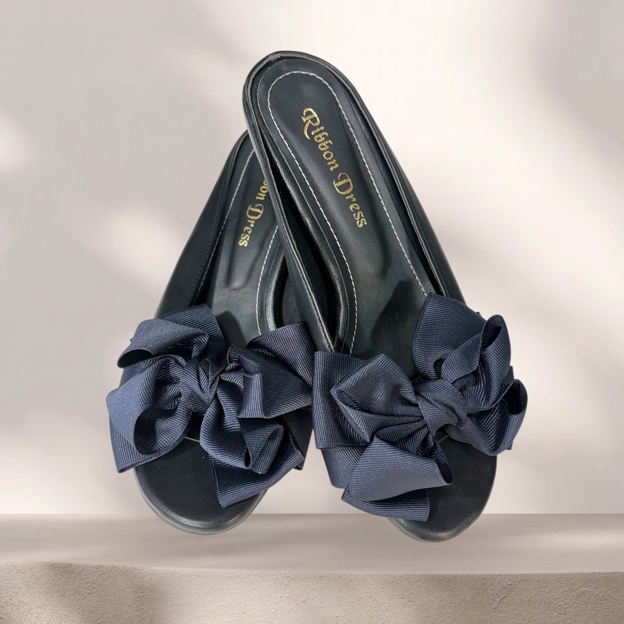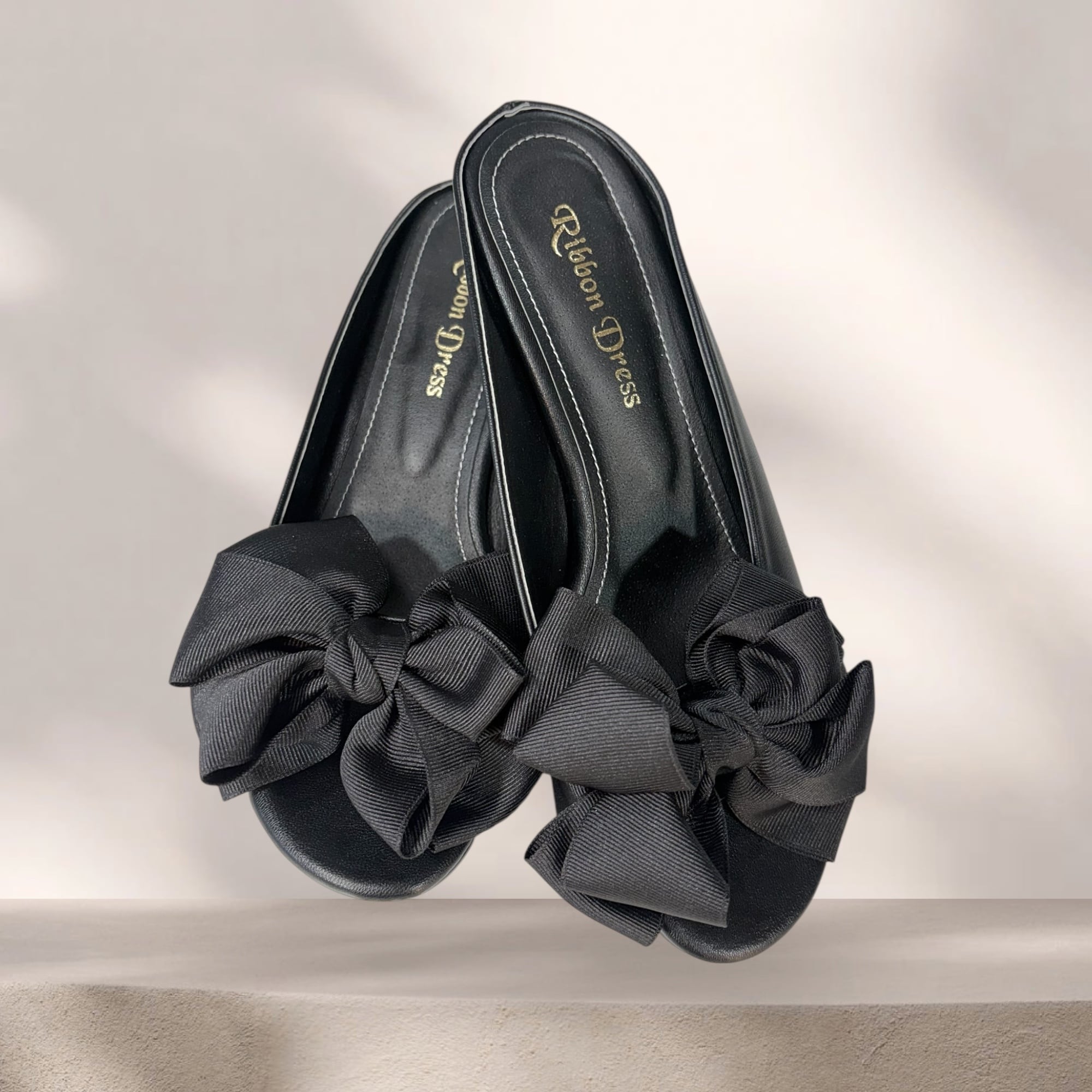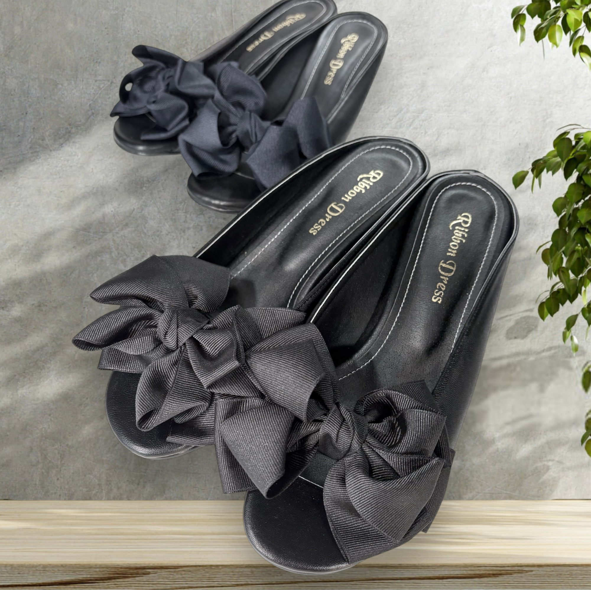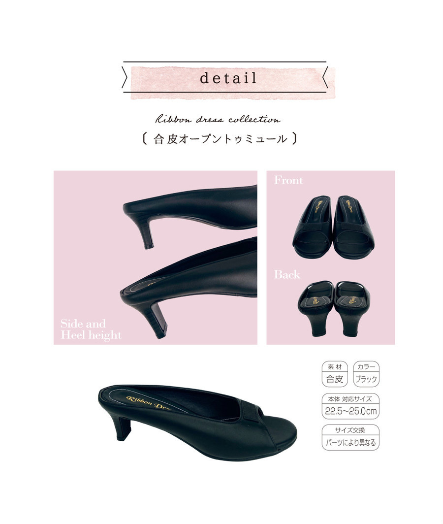 FINAL SALE★spg0003_om- 合皮オープントゥミュール【ブラック】グログラン・ツィストリボン