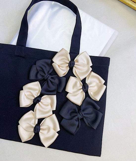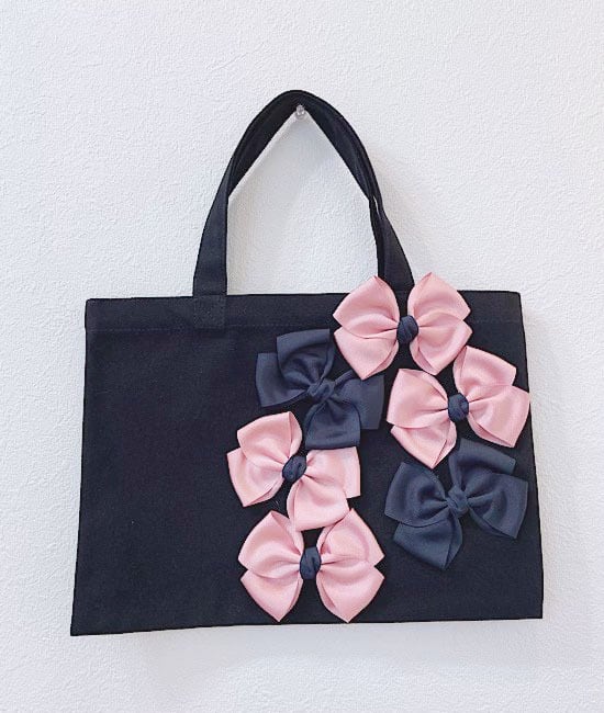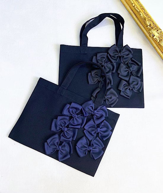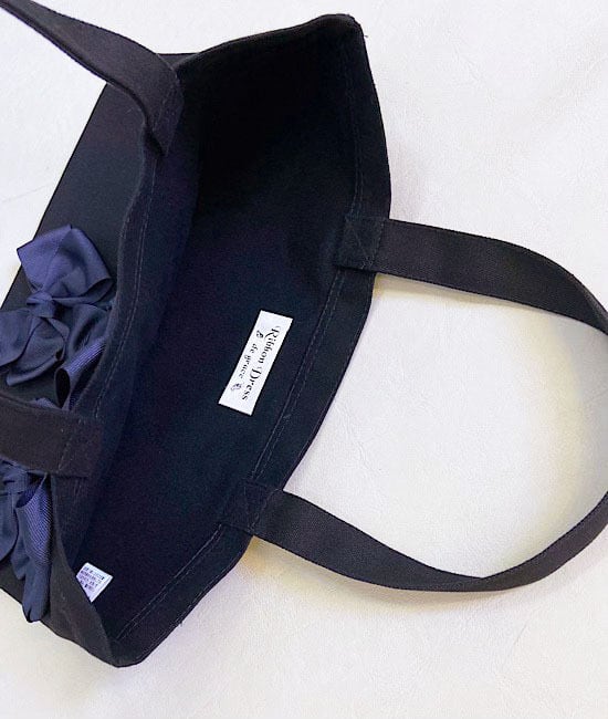 FINAL SALE★bg0108- 【A4対応】キャンバストートM:ブラック《コサージュライン》《バイカラーリボン》★★★