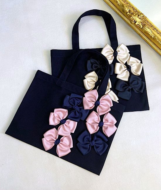 待望のA4サイズが入るMサイズのトートが入荷致しました。マチが無いので書類もよれずに収納しやすく、容量も程よいサイズ感です。2色のリボンの組み合わせが可愛いバイカラーリボン♪お好きなお色を2色までお選びいただけます。お子さまのお稽古バッグにも最適です。