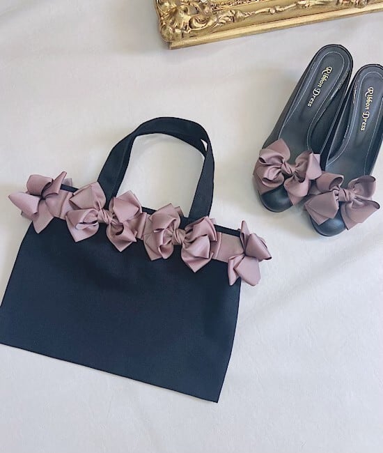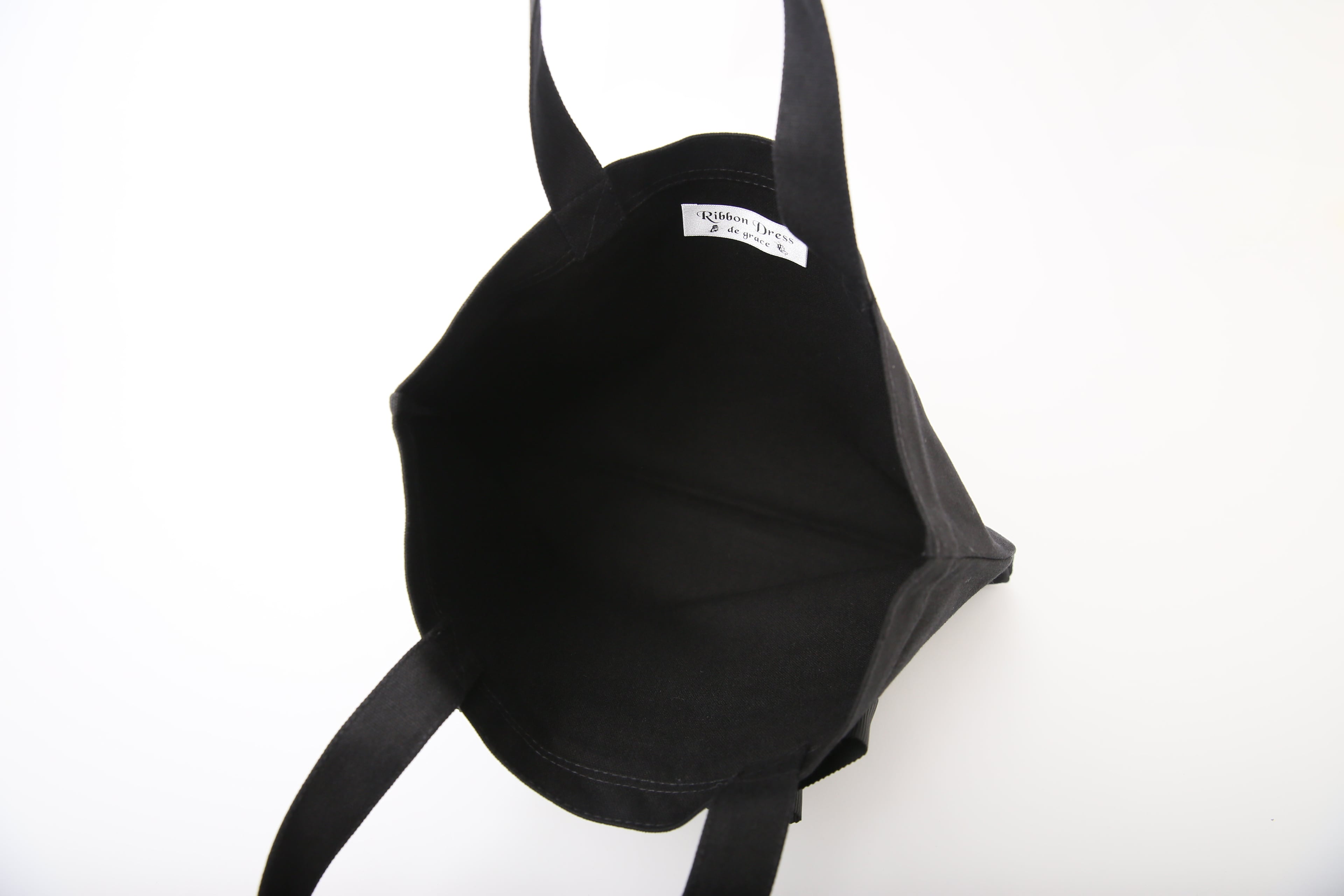 bg0282- 【A4対応】キャンバストートM:ブラック《ブーケライン》《グログラン・ツィストリボン/6P》