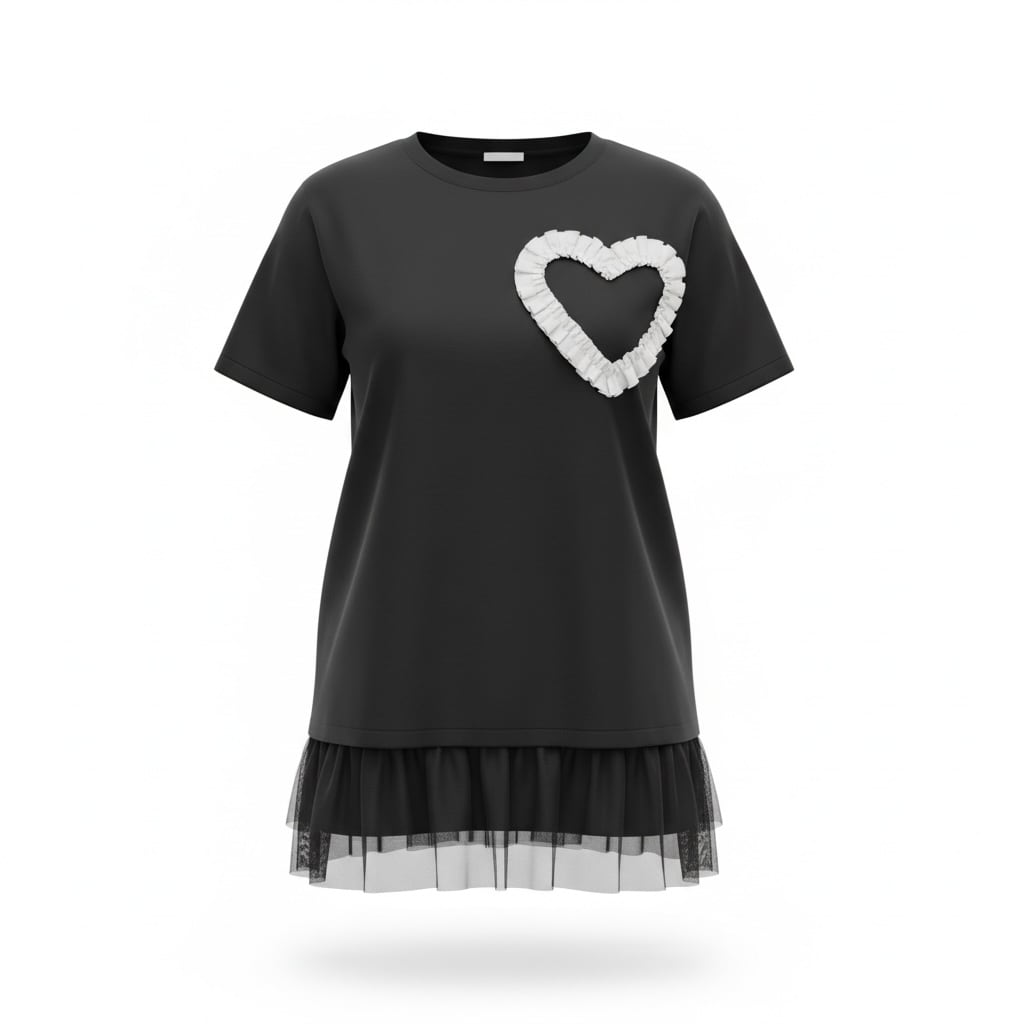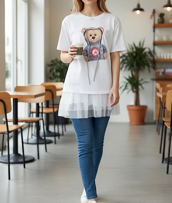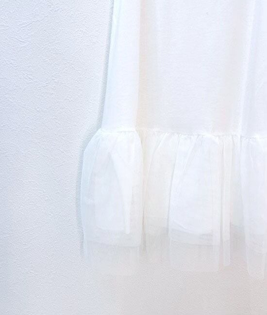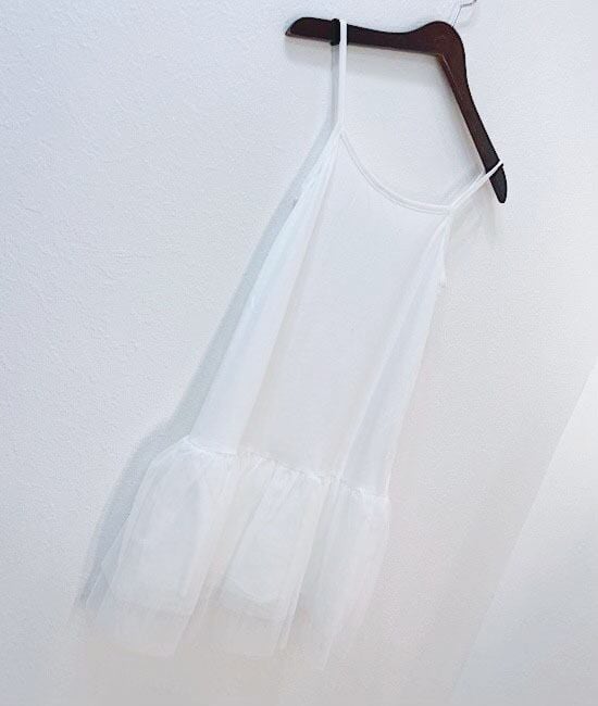 チュールレースをあしらったインナーキャミソールは、カットソーや