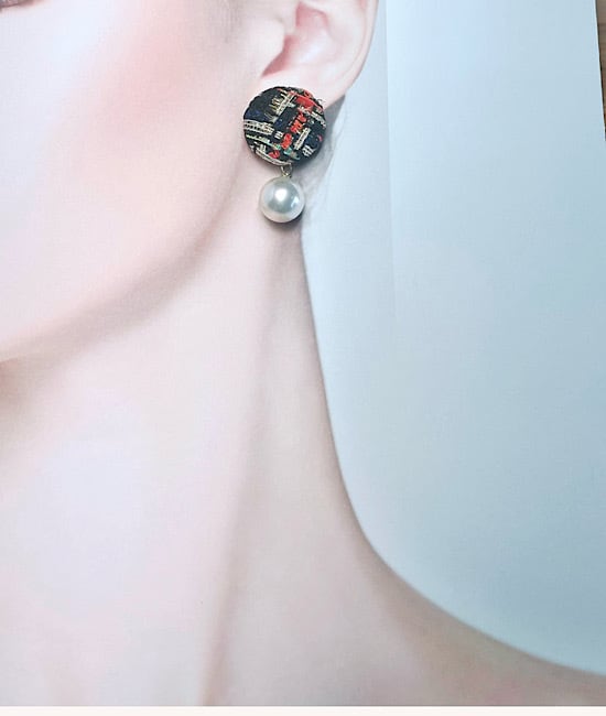 ミックステクスチャのツイードが秋冬のファッションを引き立ててくれるピアスです。