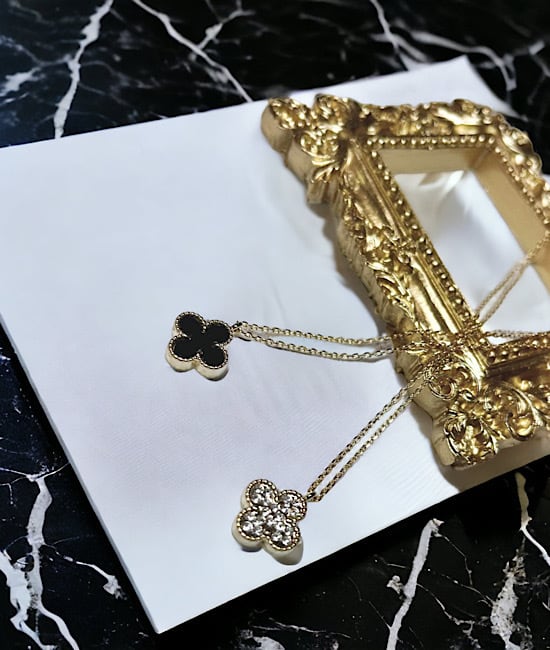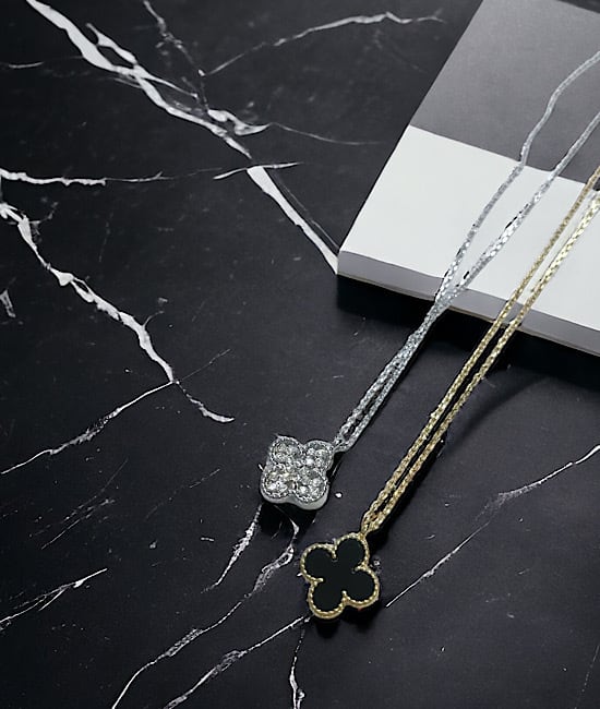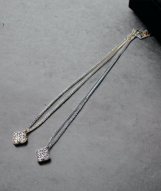 一粒フラワーの中に片面がストーン、もう片面がブラックにデザインされてとってもキュートなネックレスです♪プチネックレスなのに存在感大のキュートなフラワーネックレスです☆