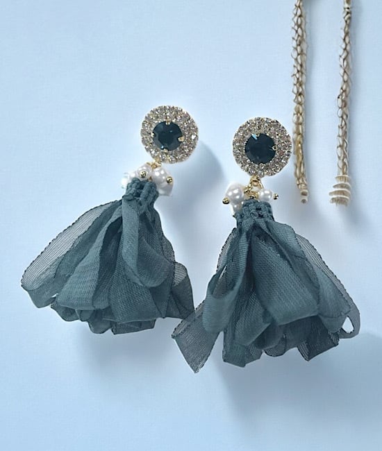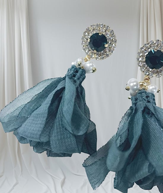 動くたびにフリンジも揺れるエレガントでフェミニンなピアスです。