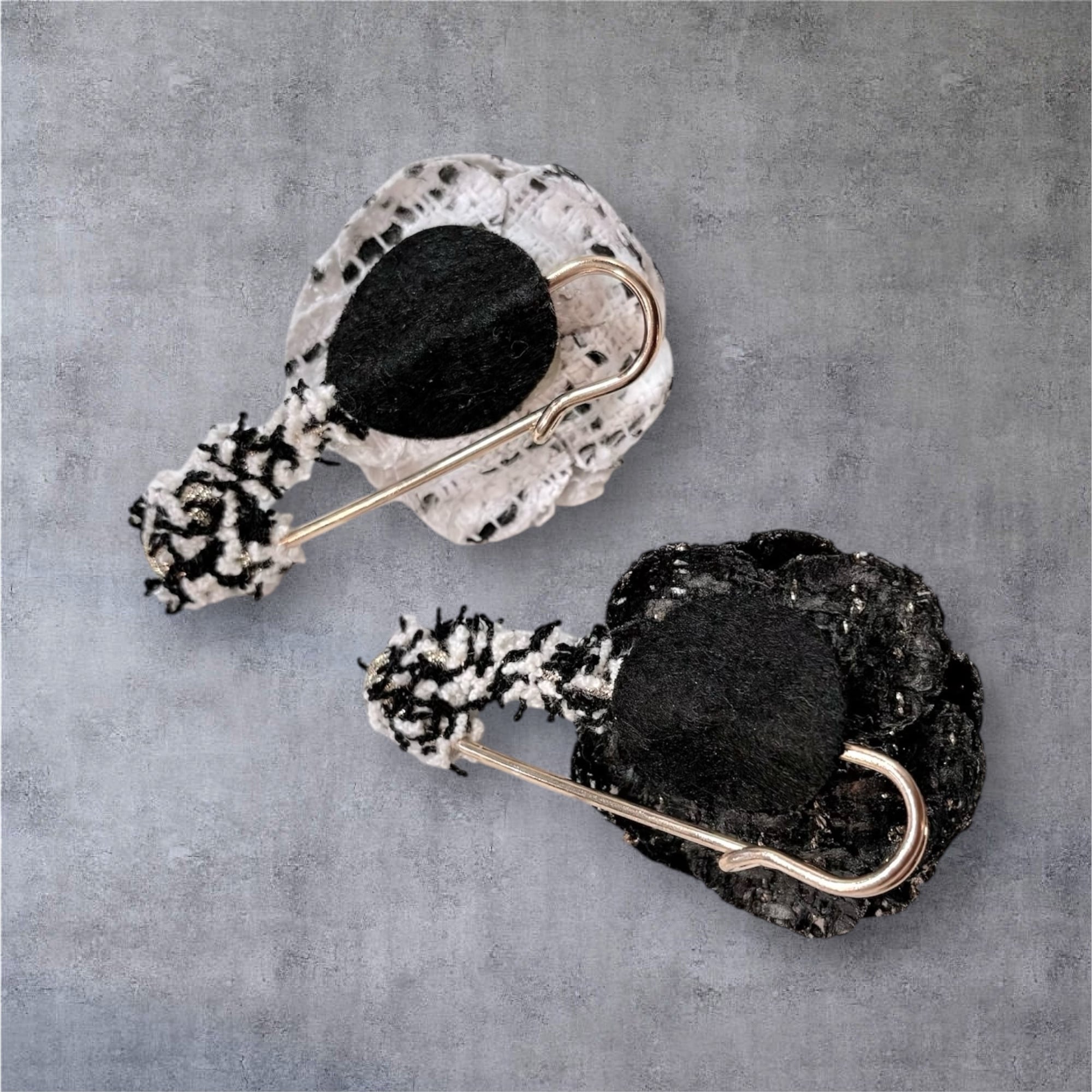 ツイード生地で仕立てられたカメリアがシックなので幅広いコーデにご利用いただけます。